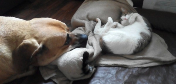 Labrador Opi Paul (geb.10.08.2004) Pacco und Katze Nicky